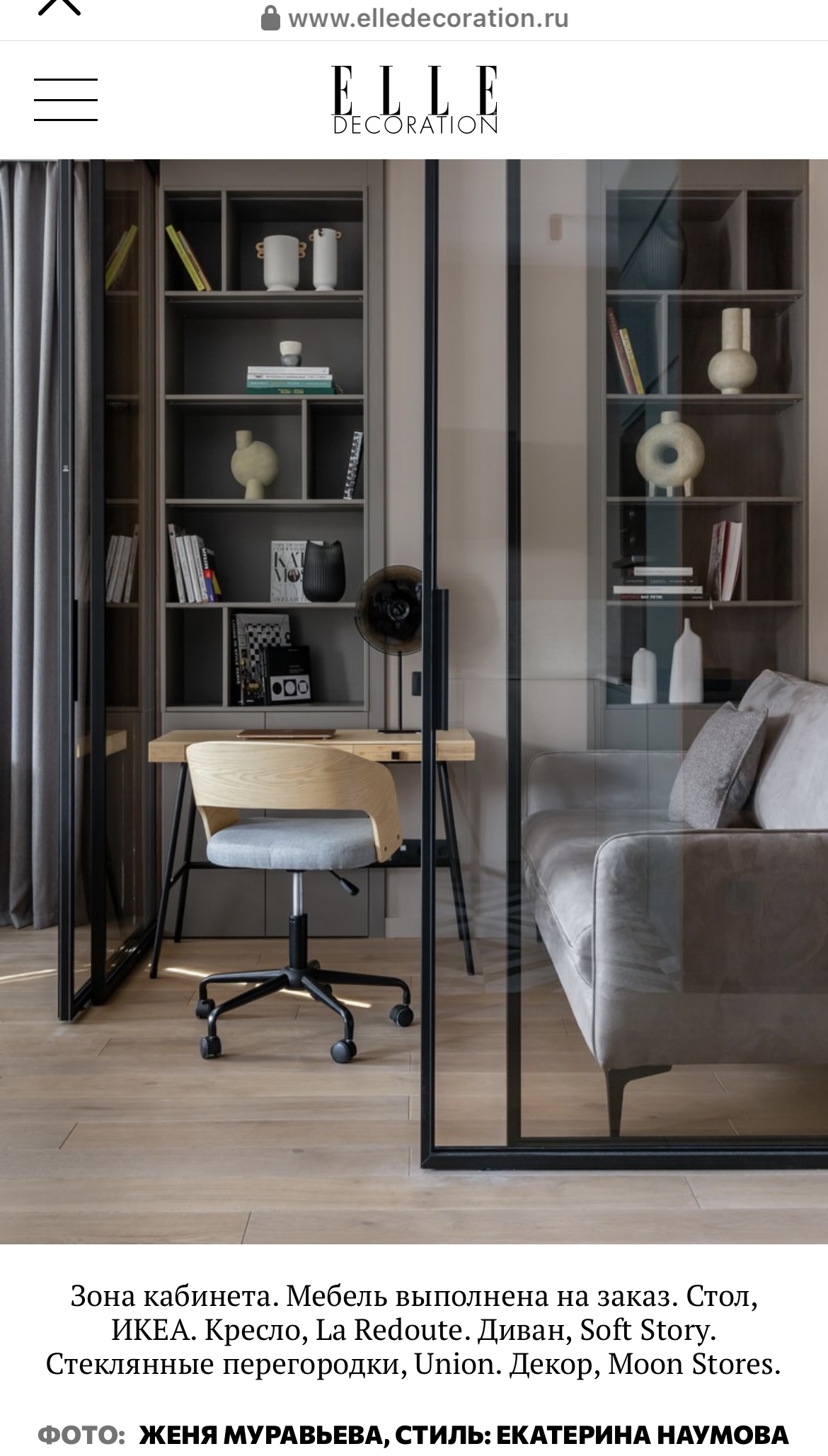 Диван от SoftStory в статье журнала Elle Decoration